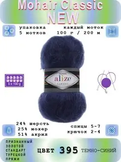 Пряжа Мохер Классик Ализе 395 темно-синий 5*100г*200м