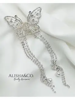 Аксессуар для волос Заколка Крабик Бабочка со стразами