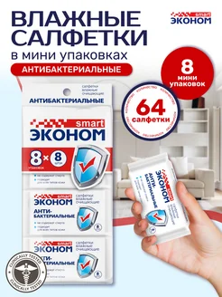 Влажные салфетки мини 8*8 антибактериальные 1 упаковка 64шт