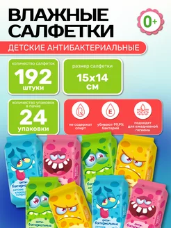 Детские влажные салфетки мини 8*24 антибактериальные 192шт