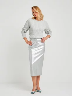 Юбка прямая офисная миди из экокожи