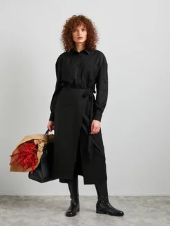 Платье рубашка приталенное офисное теплое миди