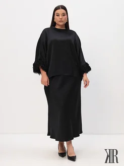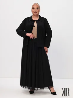 Блузка стильная нарядная, рубашка с жабо больших размеров