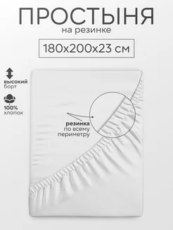 Простынь на резинке 180х200 хлопок однотонная натяжная