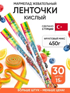 Жевательный мармелад кислый ленточки полоски длинный радуга