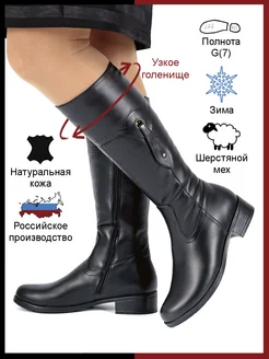 Сапоги зимние с узким голенищем на каблуке натуральная кожа