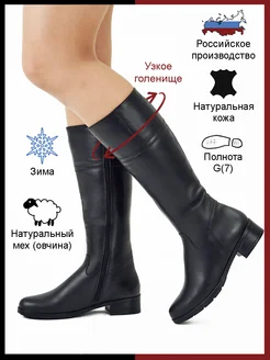 Сапоги зимние высокие на меху с узким голенищем на каблуке