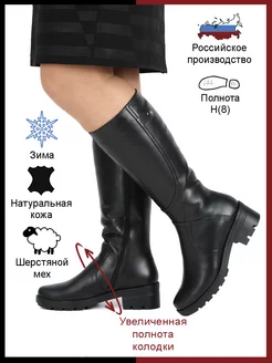 Сапоги зимние на каблуке с широким голенищем на полную ногу