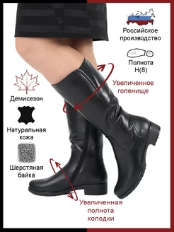 Сапоги демисезонные высокие с широким голенищем на каблуке