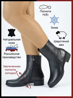 Полусапоги зимние на низком каблуке из натуральной кожи