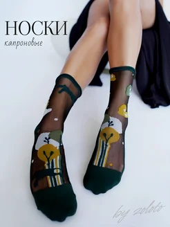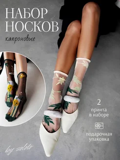 Носки капроновые прозрачные тонкие с рисунком набор 2 пары