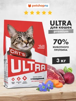 Сухой корм с говядиной для стерилизованных кошек, 3кг