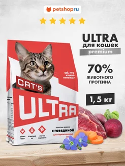 Сухой корм с говядиной для стерилизованных кошек, 1,5кг