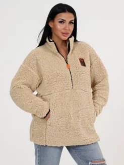 трикотажная толстовка худи с молниeй, шерпа барашек