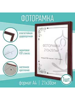 Фоторамка влагостойкая коричневая А4 для фото 21х30 см