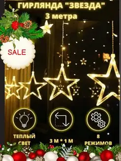 Гирлянда новогодняя занавес "ЗВЕЗДЫ". Теплый свет