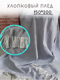 Плед 150*200 с бахромой и кисточками хлопок