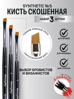 Кисть для бровей синтетик 5 скошенная набор 3шт