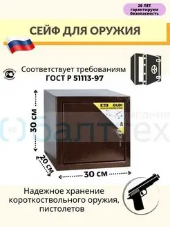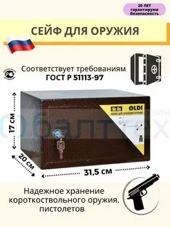 Сейф для оружия денег док-в 30х30х20см с полкой ключевой №8