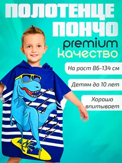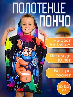 полотенце пончо детское пляжное банное с капюшоном халат