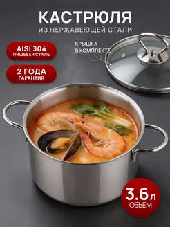 Кастрюля 3,6 л из нержавеющей стали с крышкой