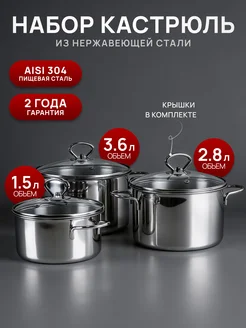Набор кастрюль из нержавеющей стали с крышками для кухни