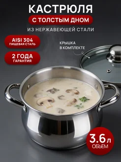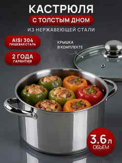 Кастрюля 3,6 л с крышкой нержавеющая сталь с толстым дном