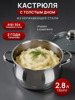 Кастрюля 2,8 л с крышкой нержавеющая сталь с толстым дном