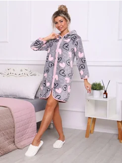 Халат домашний на молнии с капюшоном