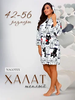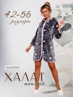 Халат теплый домашний на молнии с капюшоном