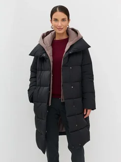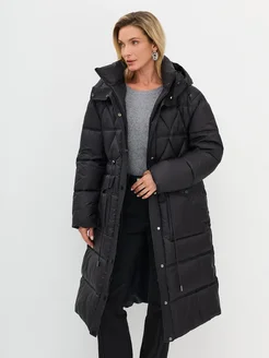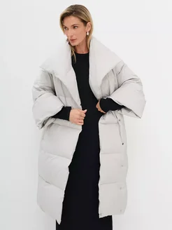 Пальто пуховик зимний длинный с капюшоном оверсайз