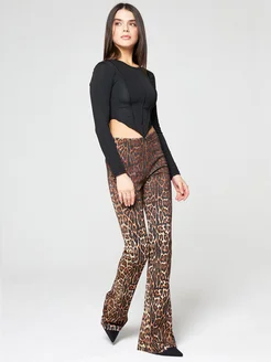 Леггинсы жeнские офисные клеш от колeна в рубчик