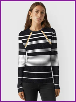 Лонгслив облегающий в рубчик с длинным рукавом в полоску