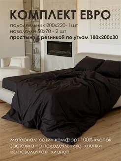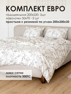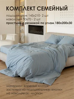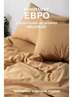 Постельное из вареного хлопка, Евро, с простыней на резинке