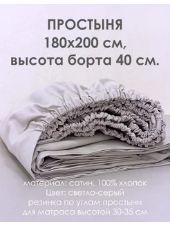 Простынь с резинкой по углам 180х200, борт 40 см, из сатина