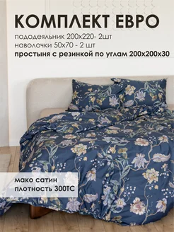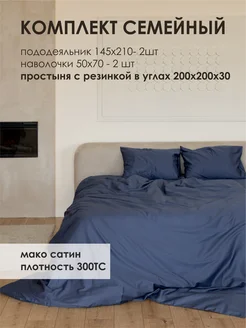 Семейное постельное белье из сатина с двумя пододеяльниками