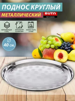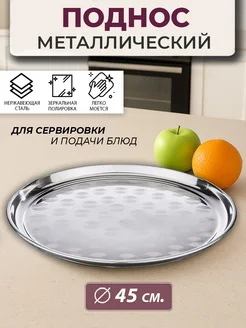 Поднос круглый металлический сервировочный 45см