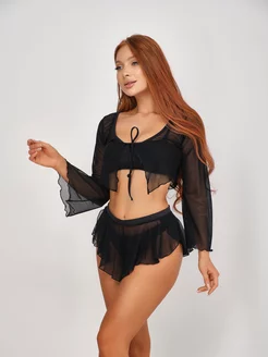 купальник раздельный 4 в 1 с шортами- юбка и топ с накидкой
