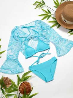 купальник раздельный 3 в 1 кроп топ парео и трусики