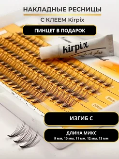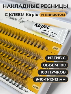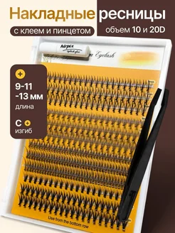 Накладные ресницы с клеем и пинцетом пучки многоразовые