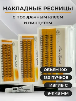 Накладные ресницы пучки многоразовые набор с клеем корейским