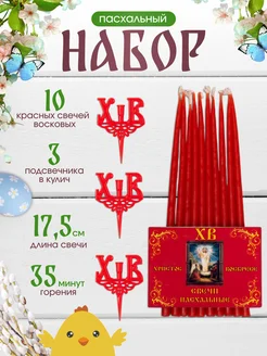 Свечи тонкие церковные с подсвечниками в кулич ХВ - 3 шт