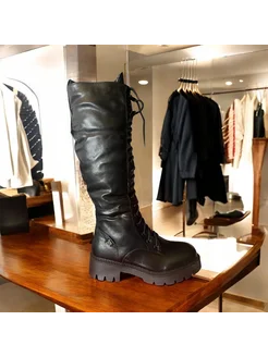 Сапоги ботфорты на шнуровке утепленные
