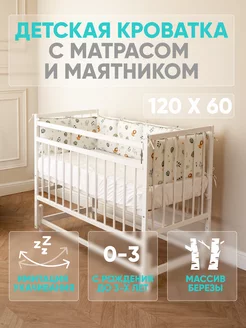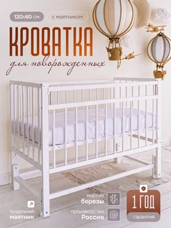 Кроватка для новорожденного 120 60 с маятником и матрасом