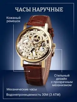 Часы механические наручные на кожаном ремешке