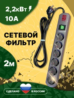 Сетевой фильтр 6 розеток, 2 метра, 16 Ампер, 3500Вт