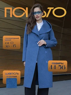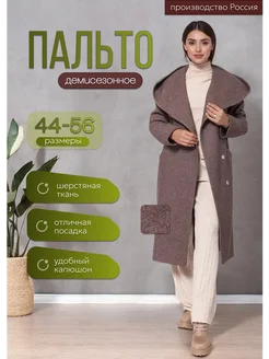 Демисезонное пальто с капюшоном удлиненное шерстяное