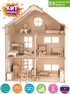 Кукольный домик из дерева с мебелью для кукол 8-12 см 45х20х…