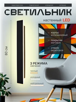 Светильник настенный светодиодный, LED бра лампа 80 см