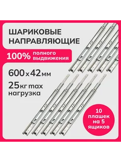 Направляющие шариковые полного выдвижения 600мм, h 42мм (5)
